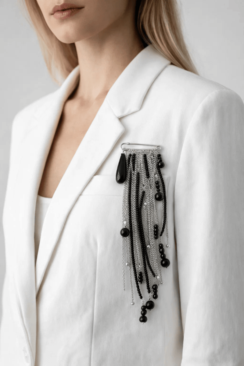 Брош булавка з чорним агатом.