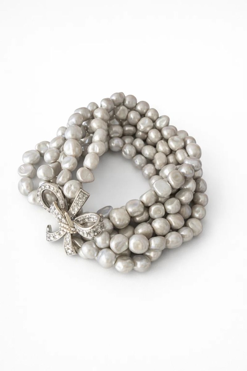 Браслет з сірих перлин 3-х рядний з квіткою 110 €