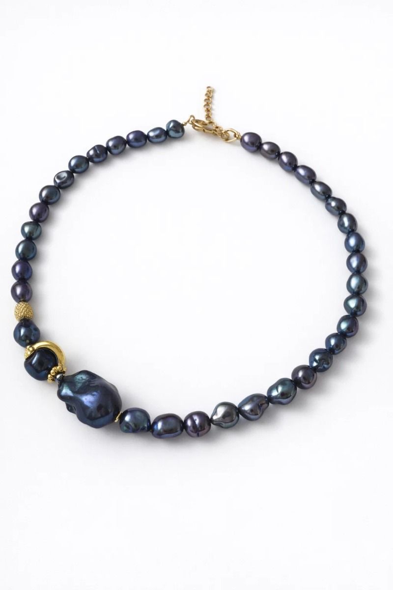 Чокер із синіх барочних перлин з перлиною Касумі, позолота 80 €